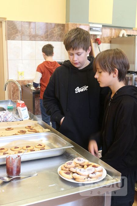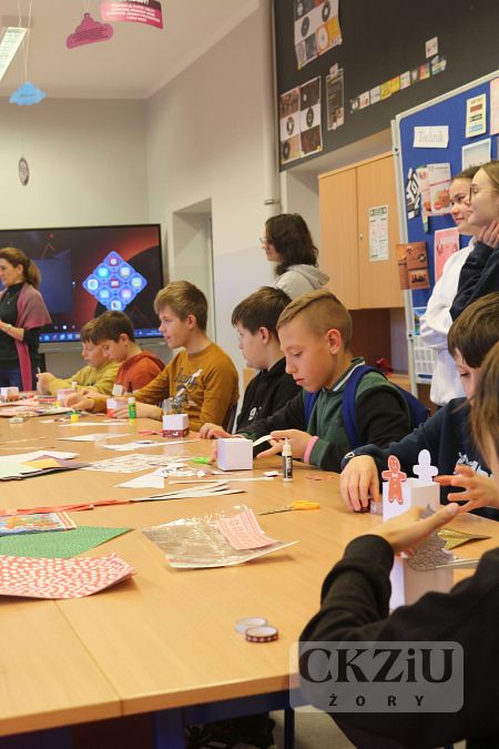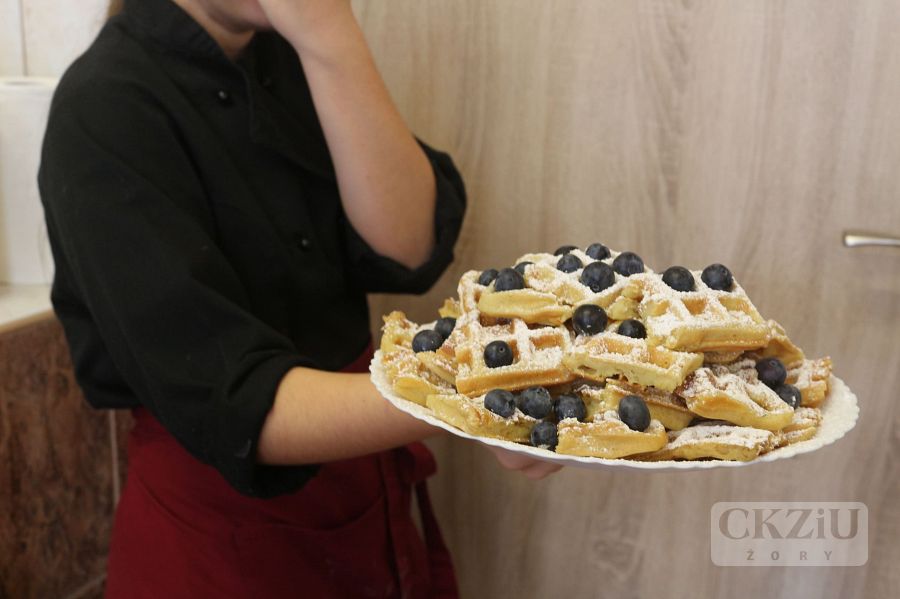 Dnia 21 listopada 2023 r. odwiedzili nas uczniowie klasy 6 ze Szkoły Podstawowej nr 3 im. Żorskich Twórców Kultury. Uczniowie brali udział w warsztatach gastronomicznych i graficznych przygotowanych przez p. Agnieszkę Gorzawską, p. Annę Krosny-Dudkiewicz oraz uczniów klas 2bT (gr.1), 2aT i 3aT. Szóstoklaśiści mogli sprawdzić się w zajęciach, które na codzień wykonują uczniowie naszej szkoły oraz zapoznać się z naszą ofertą kierunków kształcenia. W pracowni gastronomicznej czakały na nich surowce potrzebne do wypieku ciasta drożdżowego i kruchego. Nasi goście z pomocą klasy 2bT przygotowali pizzerinki, naleśniki, gofry oraz drobne ciasteczka. Z kolei podczas zajęć graficznych uczniowie zaprojektowali pudełka świąteczne oraz certyfikaty potwierdzające udział warsztatach. Bardzo dziękujemy za odwiedziny.