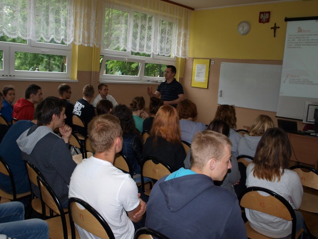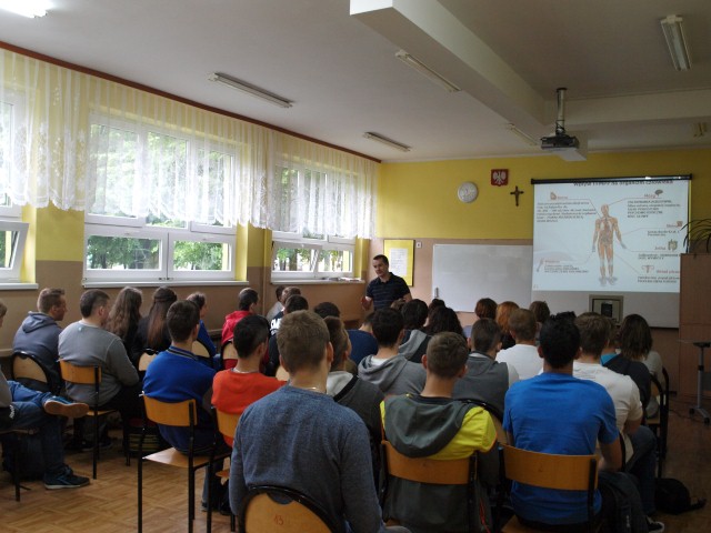 26 maja br. w naszej szkole odbyły się warsztaty dla młodzieży z klas: 1c Z, 2b Z, 1b T, 3a T i 3b T na temat: dopalaczy oraz instrukcji udzielania pierwszej pomocy. Warsztaty poprowadził pan Andrzej Morajda ratownik medyczny, który z własnego doświadczenia zawodowego opowiedział uczniom o próbach ratowania młodych ludzi po zażyciu środków odurzających, szczególnie dopalaczy. Pokazał także jak udzielić tym osobom pierwszej pomocy do przyjazdu karetki. Uczniowie z wielkim zaangażowaniem uczestniczyli w warsztatach, gdzie mogli dowiedzieć się także o formach poprawy swojego samopoczucia i nastroju niekoniecznie sięgając po środki psychoaktywe.