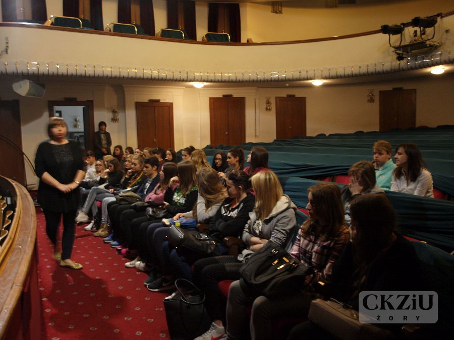 Dnia 20 kwietnia 2016 r. uczniowie klas 2aT, 2bT oraz 1T pod opieką pań: Joanny Tumuli, Katarzyny Wronki oraz Renaty Wieczorek wzięli udział w warsztatach teatralnych zorganizowanych przez Teatr Śląski im. Stanisława Wyspiańskiego w Katowicach. Prowadząca zajęcia pani Renata Janiszewska w interesujący sposób przedstawiła najważniejsze fakty z historii Teatru Śląskiego. Przypomniała także jak na przestrzeni dziejów zmieniał się wygląd teatru. Podczas tej ciekawej lekcji uczniowie mogli zobaczyć teatr zza kulis. Obejrzeli między innymi różne sceny oraz magazyn, w którym przechowywane są rekwizyty, poznali zastosowanie zapadni. Najważniejszym punktem warsztatów było jednak poznanie tajników pracy aktora. Prowadząca spotkanie pokazała uczniom maski stosowane w commedii dell’arte. Chętni uczestnicy mogli wcielić się w zaproponowane role i odegrać krótkie etiudy. Podczas warsztatów uczniowie pracowali nad wyobraźnią, koncentracją, pamięcią, świadomością ciała, oddechem, dykcją, interpretacją tekstu, dialogiem oraz ruchem scenicznym. Wizyta w teatrze okazała się więc nie tylko pouczającą lekcją, ale także doskonałą zabawą, kształtującą wiele przydatnych umiejętności.