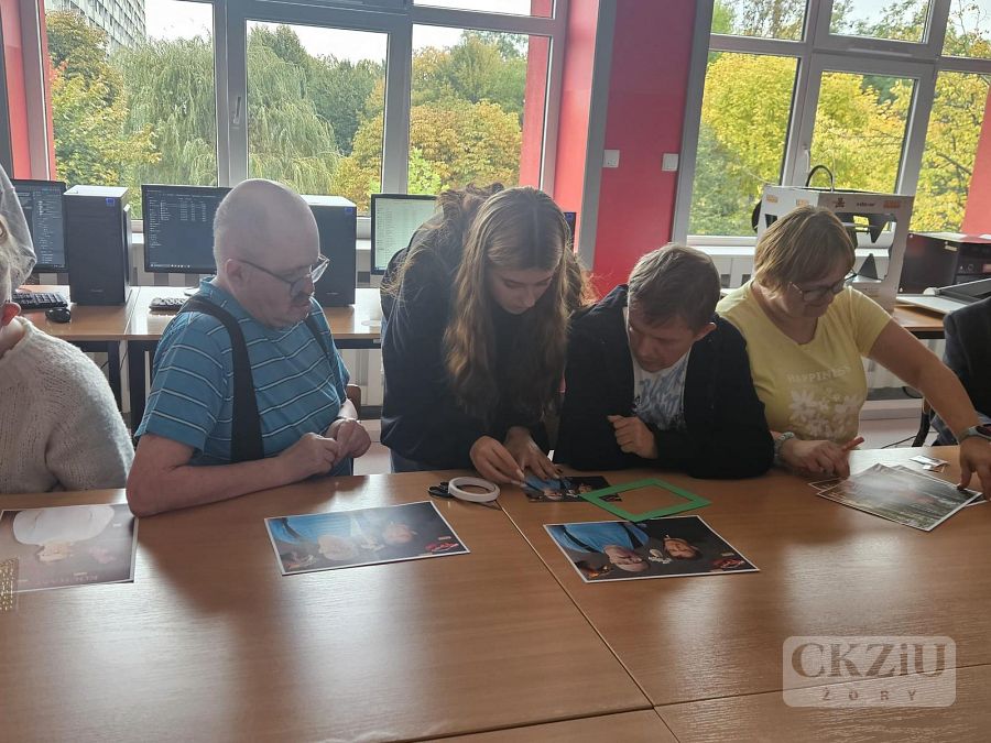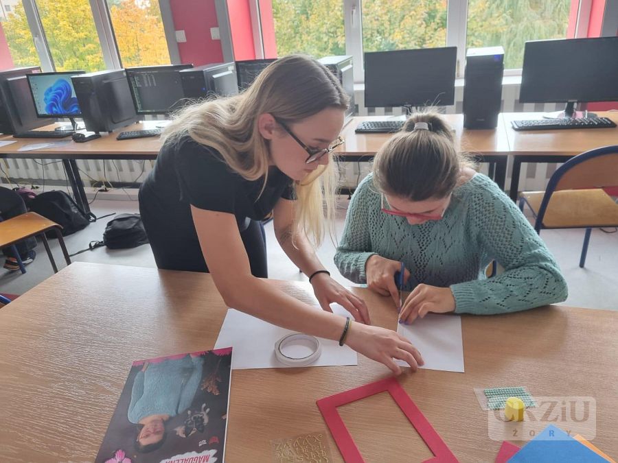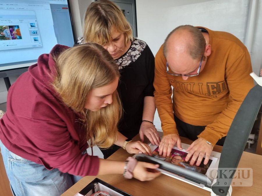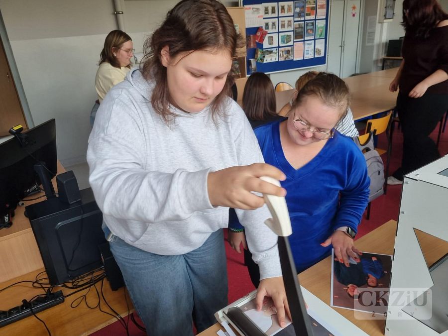 Warsztaty graficzne prowadziła pani Anna Krosny-Dudkiewicz, uczestnicząca w programie job-shadowing, wspierana przez uczniów klas 4aT i 3aT oraz uczniów biorących udział w zagranicznym stażu zawodowym. Uczestnicy wykonywali zdjęcia, które następnie poddawali retuszowi i fotomontażowi. Gotowe fotografie były drukowane i umieszczane w własnoręcznie wykonanych ramkach – każdy stworzył unikalną pamiątkę z warsztatów. Ponadto w ramach warsztatów informatycznych pani Ania przeprowadziła szkolenie, w czasie którego omówione zostały zagrożenia czyhające w sieci oraz przeprowadzono pogadankę na temat zapobiegania wykluczenia w internecie.