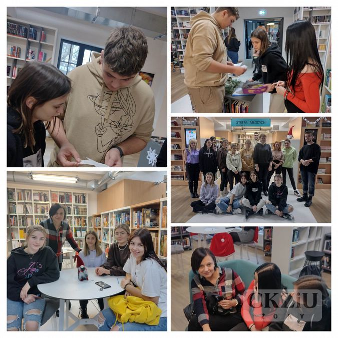 W dniu 08.12.2022 r. klasa 3c udała się na wycieczkę do Miejskiej Biblioteki Publicznejw Żorach na zajęcia biblioteczno - integracyjne o tematyce książki „Wiedźmin”. Zostaliśmy podzieleni na 4 zespoły, które miały za zadanie rozszyfrować ukryte wewnątrz biblioteki zagadki.
