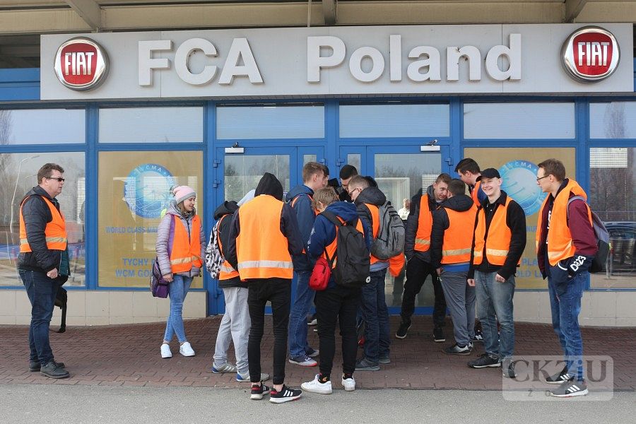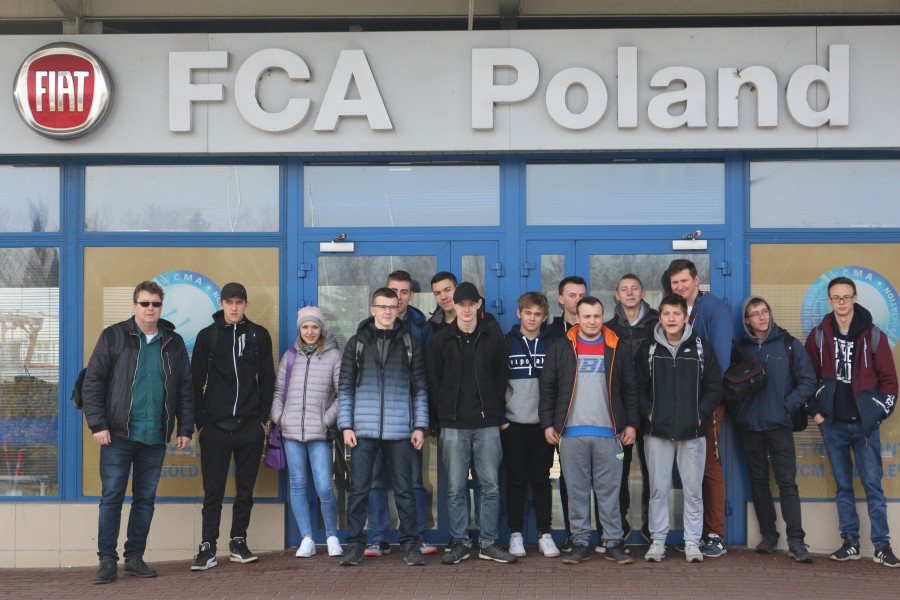 W dniu 29 marca br. uczniowie z klasy 3dZ wraz z opiekunami mieli okazję zwiedzić Fabrykę samochodów osobowych firmy Fiat Chrysler Automobiles (FCA) Poland w Tychach. Uczestnicy wycieczki zostali zapoznani z przepisami BHP oraz z zasadami poruszania się po fabryce, a także mieli możliwość obejrzenia krótkiego filmu przedstawiającego historię powstania fabryki, etapu jej rozwoju i osiągnięcia. Następnie pod opieką przewodników młodzi mechanicy mogli obserwować, jak przebiega kolejno proces technologiczny montażu pojazdów: Fiat 500 i Lancia Ypsilon.