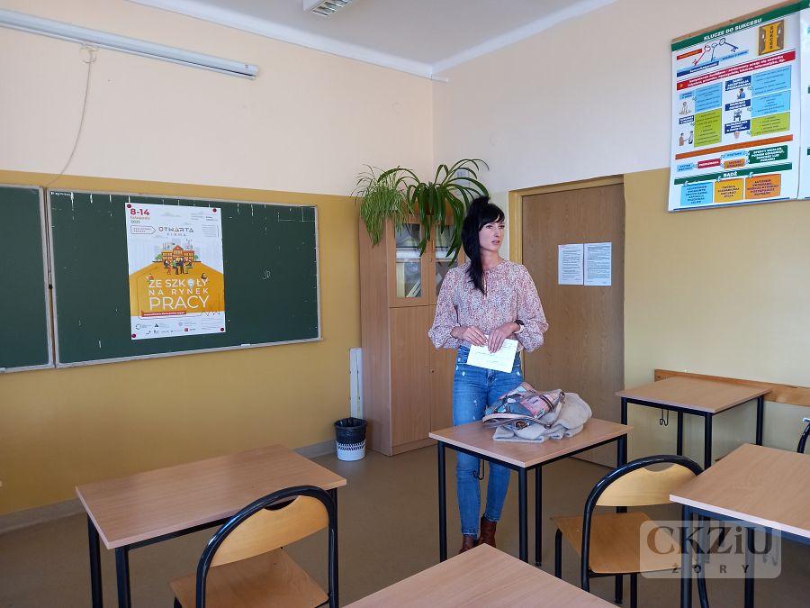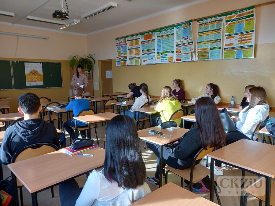 Spotkania z Przedsiębiorcami mają klasy w ramach zajęć z podstaw przedsiębiorczości. Dotychczasowe spotkania prowadzili dla uczniów: Pani Katarzyna Smyczyk – instruktorka i właścicielka firmy Pole Dance Workout w Żorach oraz Pan Adam Rojek – instruktor i właściciel firmy OSK ROYS w Żorach. Dziękuję im serdecznie za przekazaną wiedzę, poświęcony czas i zaangażowanie.
