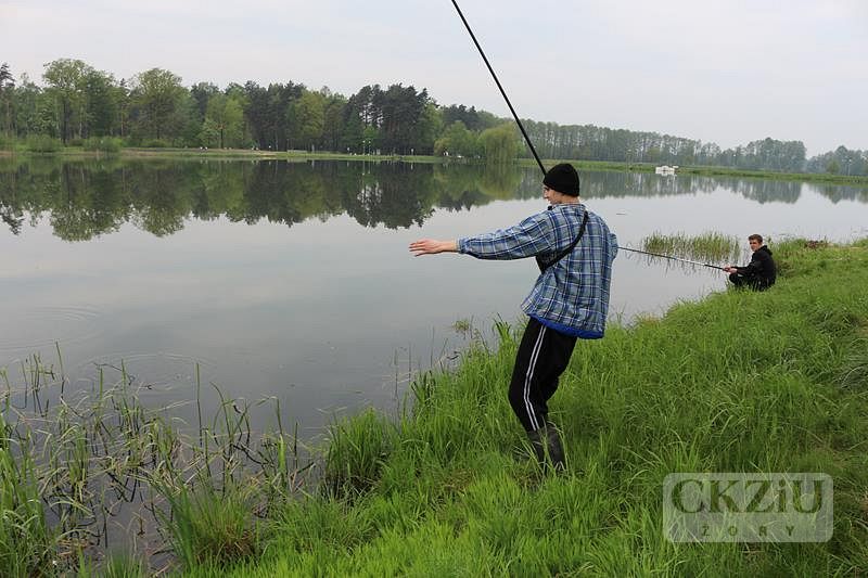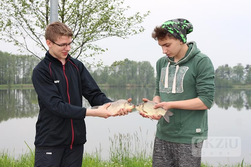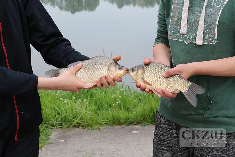 W dniu 15 maja 2017 roku uczestnicy kółka wędkarskiego "Wypłyń na głębię" działającego przy Centrum Kształcenia Zawodowego i Ustawicznego w Żorach, udali się na łowisko "Gwaruś" w Suszcu. Celem wyjazdu było zapobieganie chorobom cywilizacyjnym wśród ludzi młodych. W wycieczce uczestniczyło 15 uczniów z klasy 2dZ, trójka uczniów z klasy 2bZ oraz dwójka uczniów z klasy 1aZ, pod opieką pana Adama Rojka i pana Damiana Lejty. Jak zwykle na zbiorniku "Gwaruś" ryby dopisały. Złowiono okazałe karasie i leszcze oraz dużą ilość niewielkich karpi, płoci i okoni. Aleksy Kuśmierek z klasy 2bZ złowił nawet dwa jesiotry. Oczywiście, jak to mamy w zwyczaju, wszystkim rybom zwrócono wolność. Wędkowano metodą spławikową oraz gruntową. Jedynym, który tego dnia nie złowił żadnej ryby był pan Adam Rojek, który za to fachowo przygotował dla wszystkich smaczny posiłek. Rolę gospodarza miejsca bardzo sumiennie pełnił uczeń naszego Centrum - Patryk Przybyszewski z klasy 1aZ, któremu dziękujemy za pomoc w przygotowaniu batów, wędek i zestawów wędkarskich. Zajęcia nad wodą mogły odbyć się dzięki wsparciu Wydziału Spraw Społecznych Urzędu Miasta w Żorach, za co również serdecznie dziękujemy. Była to wspaniała promocja zdrowego stylu życia poprzez aktywność na świeżym powietrzu, rozładowanie stresu i relaks na łonie natury. Możliwość integracji, nauka pracy w zespole, lekcja cierpliwości oraz sposób na porzucenie smartfonów i odejście sprzed ekranów komputerów. Wszystkich, którzy nie mogli uczestniczyć w tej wędkarskiej wyprawie, już zapraszamy na kolejną.