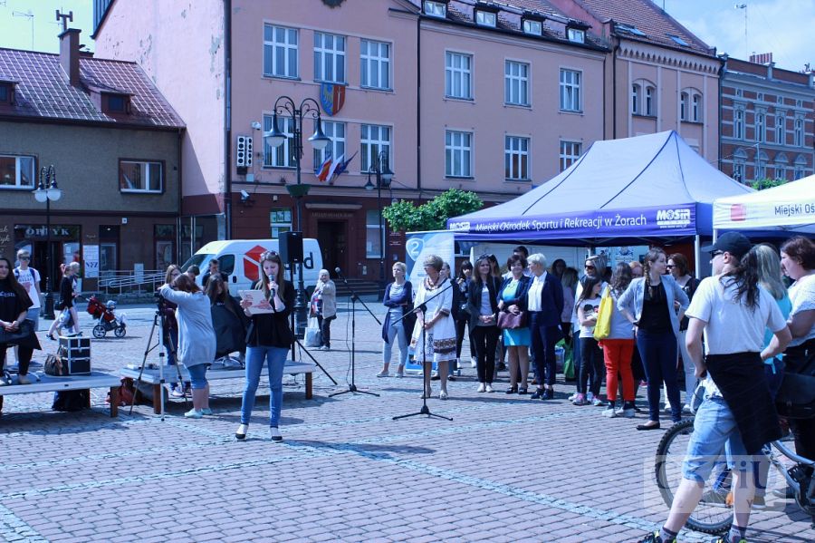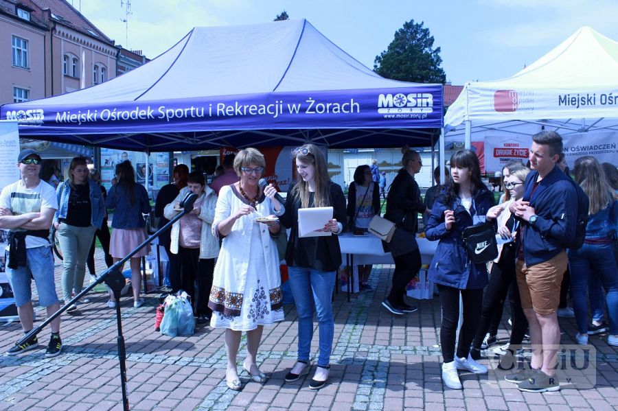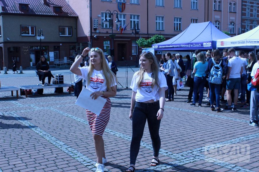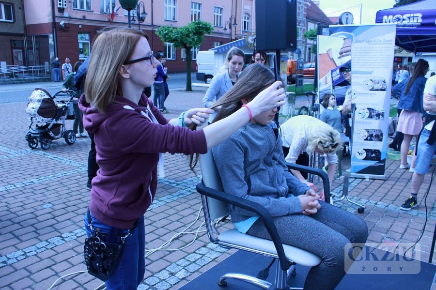 Wielki finał akcji „Zmień los - oddaj włos” odbył się w piątek 26 maja br. o godzinie 10:00 na żorskim rynku. Podczas imprezy, ochotniczkom obcinały włosy nasze uczennice Nicola Laskowska i Sonia Jędrzejewska z klasy 2cZ. Na przygotowanych przez uczniów i sponsorów stoiskach,można było spróbować zdrowego jedzenia. Wszyscy, którzy przyszli na żorski rynek mogli wziąć udział w spotkaniu z Patrycją Wieją - zwyciężczynią programu telewizyjnego „Projekt Lady”, która opowiadała o zdrowiu i urodzie. Następnie odbył się pokaz fryzur z krótkich włosów, przygotowany przez naszych uczniów z klasy 2cZ pod opieką pani Justyny Pajor i pani Anety Mrowiec, a cały pokaz poprowadził pan Maciej Wójciak. Następnie odbyły się zajęcia fitness z Weroniką Poradą – Miss Fit Polski Publiczności 2016. Chętni mogli wziąć udział w zajęciach Power Bike, które prowadziła Dagmara Makarska. Swoje stanowisko, na którym można było dowiedzieć się jak zostać dawcą szpiku kostnego i uratować komuś życie, przygotowała fundacja DKMS. Była także możliwość podpisania oświadczenia woli oddania swoich organów do przeszczepu w Kampanii Drugie Życie.
